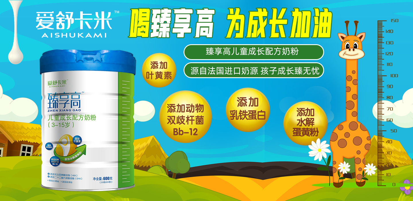品牌名稱:愛舒卡米 主營產(chǎn)品:愛舒卡米臻享高兒童奶粉,愛舒卡米享絳優(yōu)高中老年奶粉 品牌特色:奶源純正 營養(yǎng)豐富
