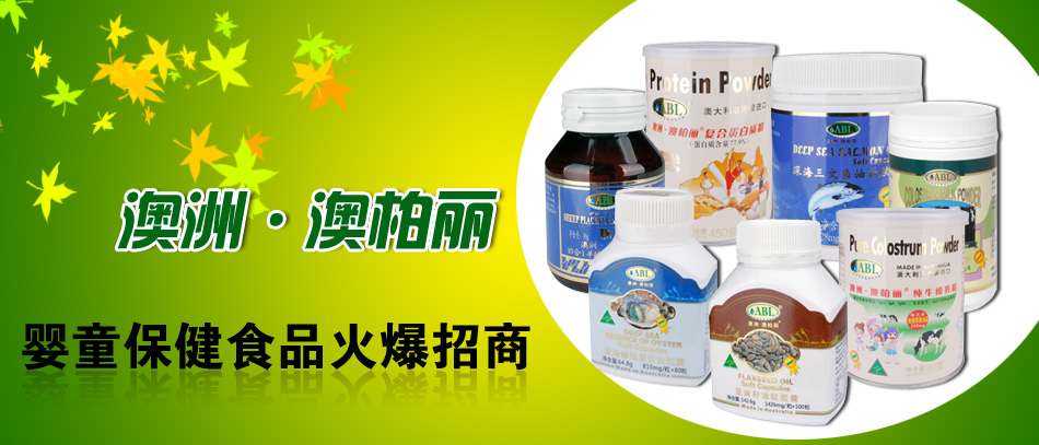 澳柏麗牌ABL(R)是澳洲ABL(Australia)公司繼澳寶牌后推出的一個高端品牌,今后新開發(fā)產(chǎn)品往往使用澳柏麗牌(ABL),品質始終如一。在不久,具創(chuàng)新性高品質的澳柏麗牌(ABL)健康食品將源源不斷地奉獻給廣大消費者。