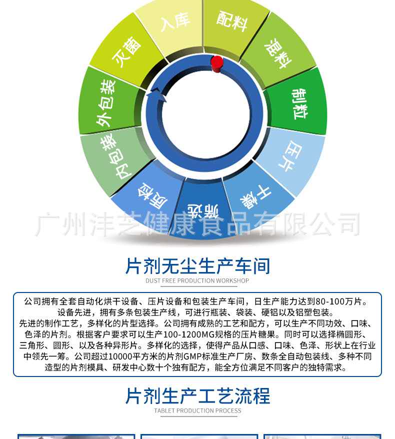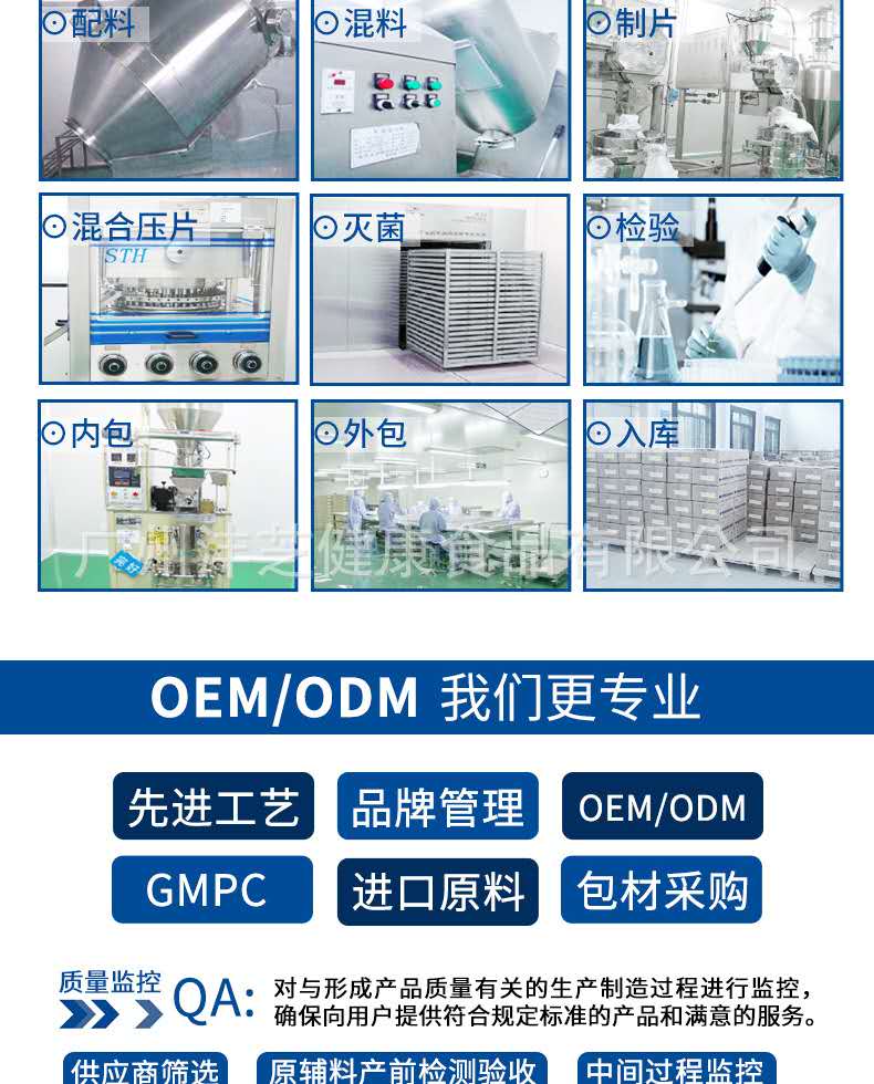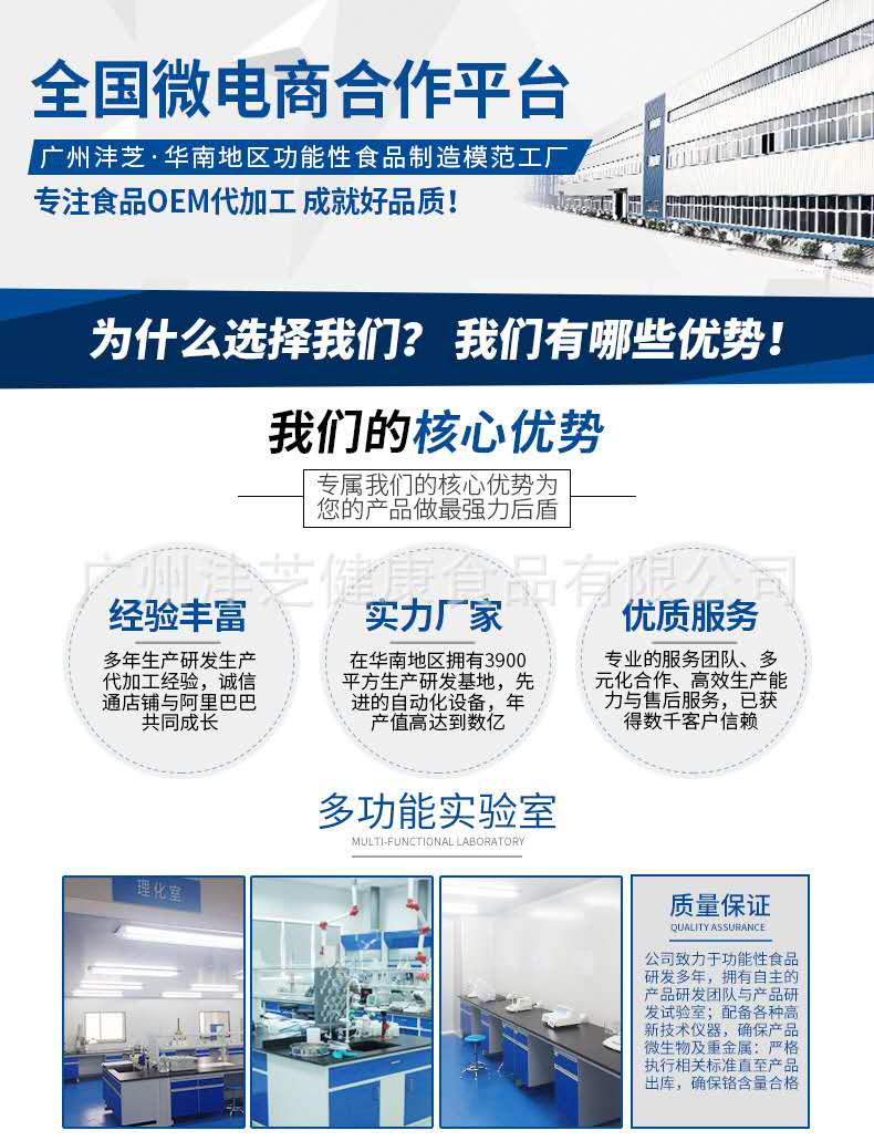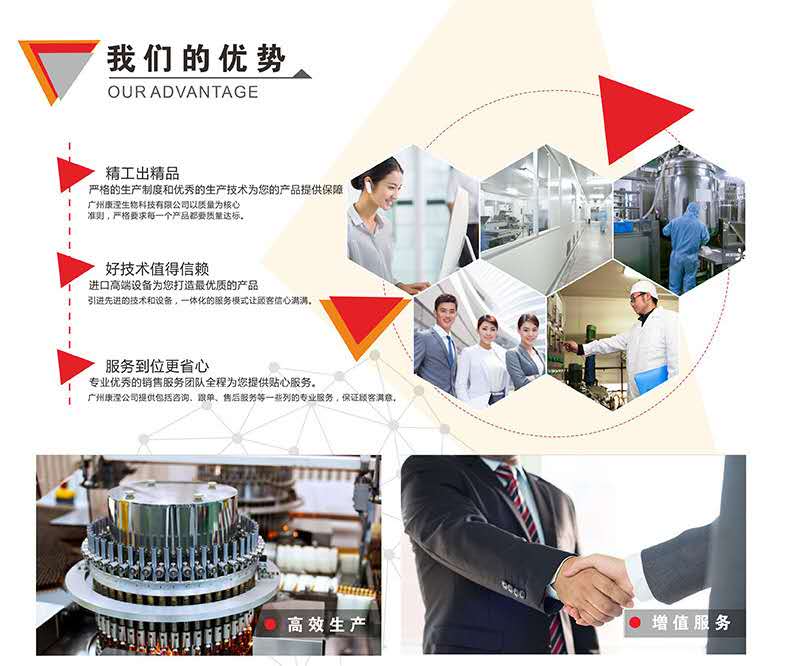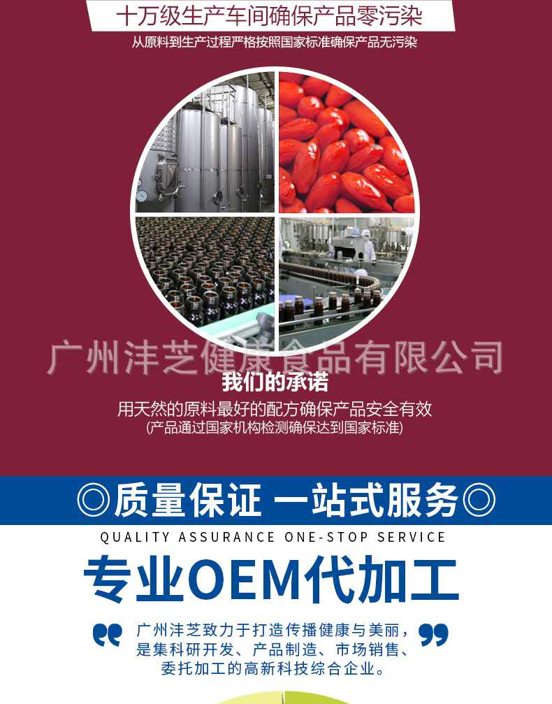 廣州灃芝致力于打造傳播健康與美麗,是集科研開發(fā)、產(chǎn)品制造、市場銷售、委托加工的高新科技綜合企業(yè)。 公司致力于功能性食品研發(fā)近10年,擁有自主的產(chǎn)品研發(fā)團隊與產(chǎn)品研發(fā)試驗室;在華南地區(qū)建立起了一家占地面積3900平方米、已獲得A級食品SC認證的高新技術生產(chǎn)工廠企業(yè)。現(xiàn)擁有片劑、粉劑、顆粒劑、口服液等十一條生產(chǎn)線,已經(jīng)報批了近200個生產(chǎn)備案批文。生產(chǎn)六大劑型的功能性食品生產(chǎn)線60余臺套及配套設備,達到年產(chǎn)口服液12000萬支、片劑10億片、沖劑及粉類產(chǎn)品500萬盒(罐)的雄厚生產(chǎn)實力。