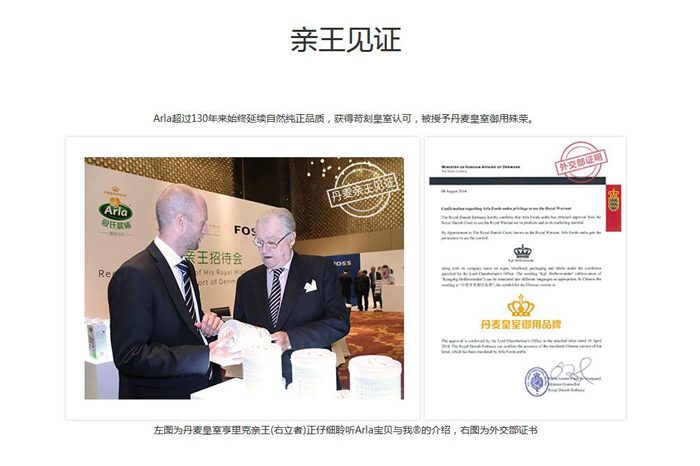 Arla超過130年來始終延續(xù)自然純正品質(zhì),獲得苛刻皇室認(rèn)可,被授予丹麥皇室御用殊榮。