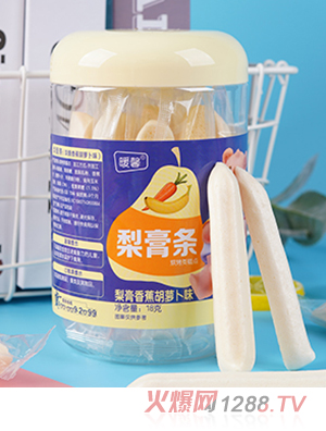 暖馨梨膏條,嚴(yán)選食材,精湛制作,有酸奶味、火龍果味、菠菜味、香蕉胡蘿卜味,共四種口味,特加入梨膏,甜蜜滋潤(rùn),好吃不膩。條狀設(shè)計(jì),大小適合。