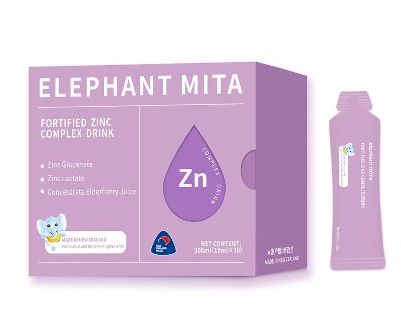 1、雙鋅配方:葡萄糖酸鋅+乳酸鋅,每袋含有機鋅8mg,接骨木莓100mg;