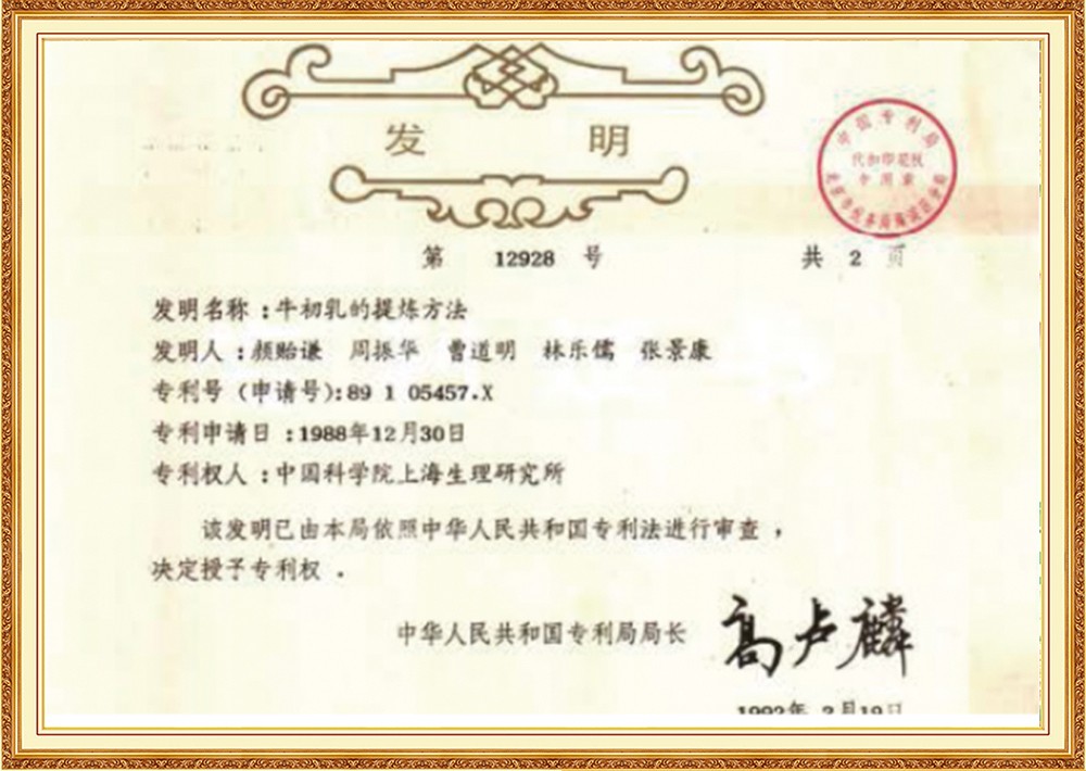 1989年,公司一款具有獨(dú)立知識(shí)產(chǎn)權(quán)的產(chǎn)品“乳珍”問(wèn)世,該產(chǎn)品凝聚了中科院上海生理研究所楊雄里院士等多位專家的智慧結(jié)晶,是早獲得國(guó)家發(fā)明專利的牛初乳制品!叭檎洹钡恼Q生,開(kāi)啟了國(guó)內(nèi)牛初乳研究應(yīng)用的先河,經(jīng)鑒定委員會(huì)專家認(rèn)定,該產(chǎn)品為國(guó)內(nèi)首創(chuàng),并獲得"國(guó)家級(jí)新產(chǎn)品"殊榮,被指定為亞運(yùn)會(huì)專用補(bǔ)劑。
