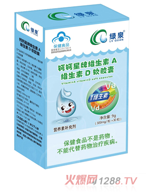綠泉鈣鈣星牌維生素A維生素D軟膠囊產(chǎn)品特色: