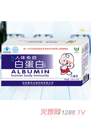 康尼兒童免疫白蛋白口服液主要作用成分是免疫白蛋白,這是一種從血漿中提取出來的蛋白質(zhì),可增加血容量和維持血漿膠體滲透壓,調(diào)節(jié)組織與血管之間水分的動態(tài)平衡,從而起到增加循環(huán)血容量和維持血漿膠體滲透壓的作用。白蛋白既能結(jié)合陰離子又能結(jié)合陽離子,可以輸送不同的物質(zhì),可將有毒物質(zhì)輸送到解毒器官。白蛋白還是人體免疫球蛋白的重要組成,可以提高人體myil、抵抗力,增強孩子的體質(zhì)。