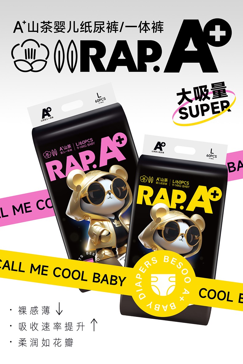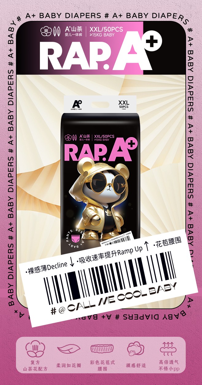 A+山茶紙尿褲/拉拉褲,復方山茶花配方,萃取天然山茶精華,貼心呵護寶寶嬌嫩肌膚;柔軟細膩,高彈力,不勒肚,給寶寶花朵包裹般的舒適感;凹凸透氣表層,透氣性能大大提升,更快釋放濕氣與熱氣;5000萬呼吸微孔,循環(huán)排濕散熱,不悶小PP;4cm加高護圍,雙側(cè)立體隔邊,避免尿液側(cè)漏。