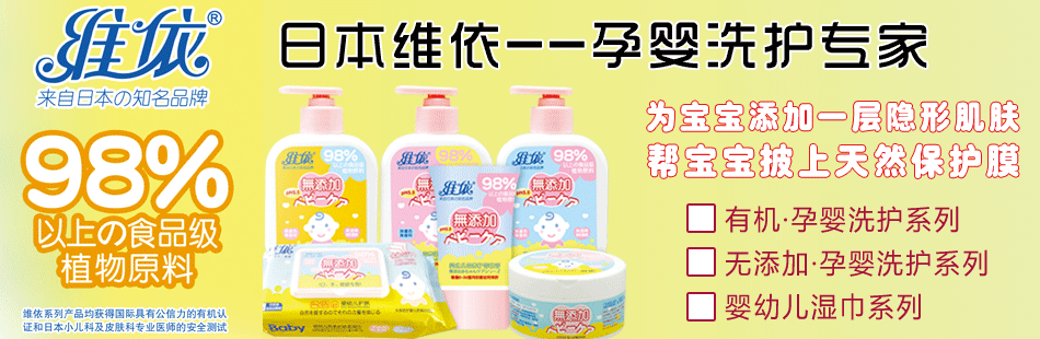 16年來,維依孕嬰系列產(chǎn)品一直在國際高端市場中的日本、歐洲、美國和香港等國家和地區(qū)的大流通渠道和專業(yè)渠道中熱銷。今天,綠色、天然、溫和、安全、優(yōu)質(zhì)的維依產(chǎn)品已經(jīng)進(jìn)入了中國,讓中國寶寶萃享天然有機(jī)精華。