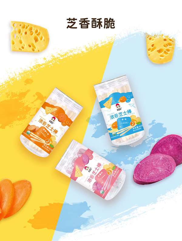 果蔬妃【濃香芝士棒】是一款芝士含量大于6%的手指棒棒零食,芝香酥脆,采用海藻糖配方,清甜奶香,還能補充鈣質(zhì);獨立包裝,方便衛(wèi)生,有原味、紫薯和胡蘿卜三種口味,適合作為12個月以上寶寶的抓握小零食。